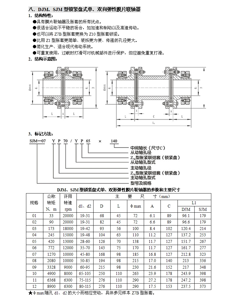 DJM,SJM型鎖緊盤式單雙形彈性膜片聯(lián)軸器