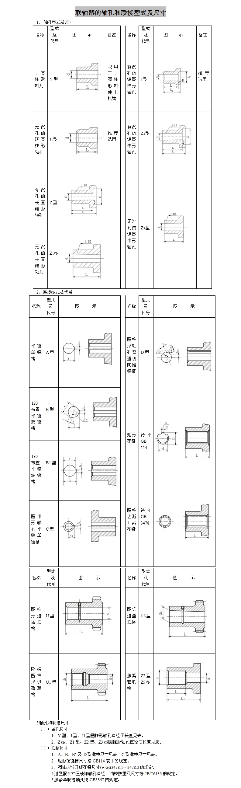 聯軸器軸孔和鍵槽形式及尺寸表(GB/T3852-1997)