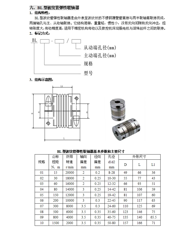BL型波紋管彈性聯軸器