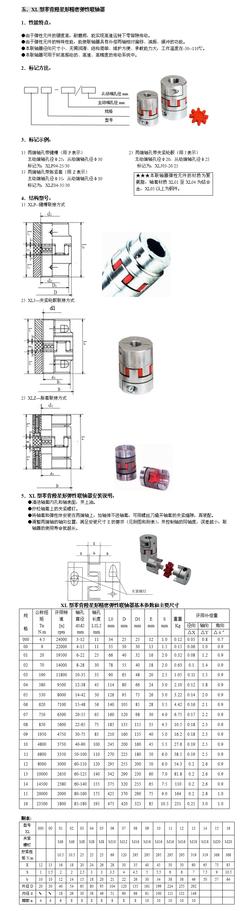 XL型零背隙星形精密彈性聯軸器